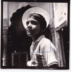 Boy photographed outside a Photo-studio