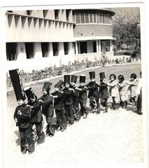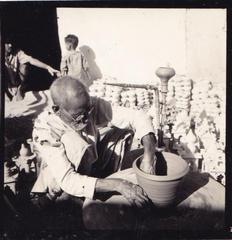 Artisans hand-stitching textile, 1958.