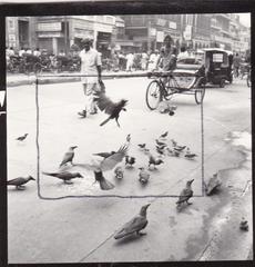 Crows, Sparrows, and other birds along a street in Old Delhi, 1979.