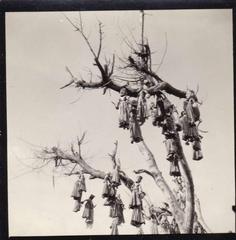 Puppets hanging from a tree