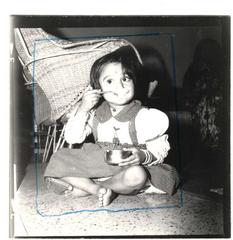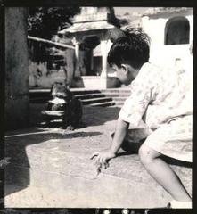 Madhu playing with a wooden boke, 1951.