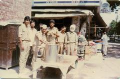Gyan Singh of Nizamuddin selling corn near Nirankari Bhavan, 1990's.