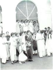 Group photograph of teachers and students at of the Learning Centre, Ali Manzil Haveli, the early 1960's