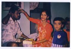 Sushil Yadav with his aunts in Shadi-Khampur.