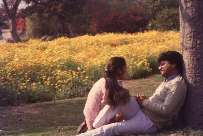 A couple resting under a tree at Mughal Gardens, Rashtrapati Bhavan