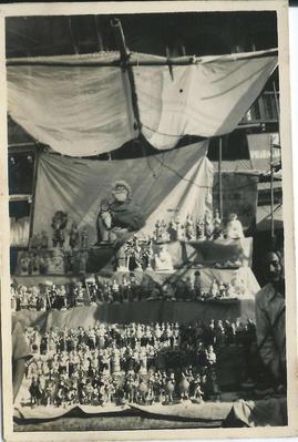 Street-side shop selling wooden caricatures and toys