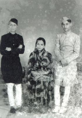 Begum Mumtaz Mirza with her husband Akhlaf Mirza to her right and her brother-in-law to her left.