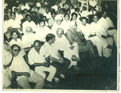 Sh. Ram Lal Seth sitting in the second row, fourth seat from left, in a local gathering at Nzamudidn East. Ram Lal Seth was one of the earliest residents of Nizamuddin East, was known for organising cultural and sporting events in the community. He was fondly remebered as 'Lal Pehelwan'.