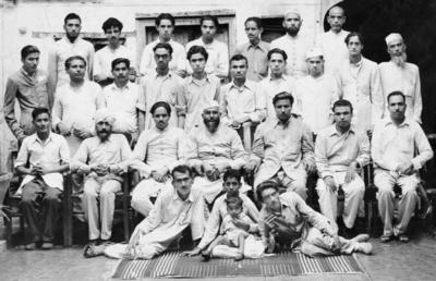 An early editorial team of Nai Duniya. Proprietor-editor Maulana Abdul Waheed Siddiqui sitting at the centre. Current editor Shahid Siddiqui, as a child on lap. Nai Duniya is a urdu weekly