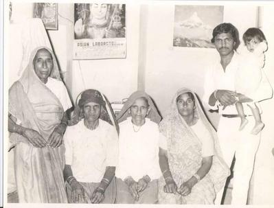 Sushil Yadav with his aunts in Shadi-Khampur.
