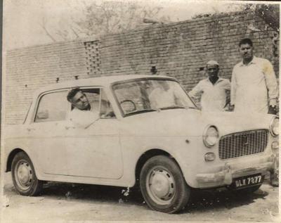 Phool Singh Chauhan in his ambassador car. He was the first one to own a car in the neughbourhood. He was also a member of Jan Sangh Party