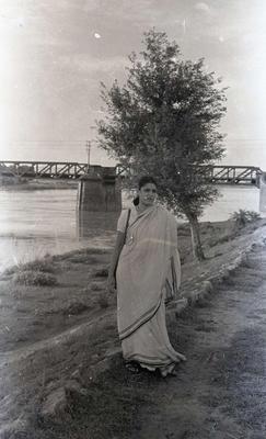 Narain Prasad and family visit the banks of the Hindon river in the 1950s. Hindon Railway bridge in the background