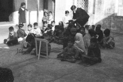 Mathematics class in progress at Learning Centre, Ali Manzil Haveli, the early 1960's.