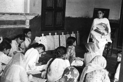 Language teaching class at the Learning Centre, Ali Manzil Haveli, 1957.