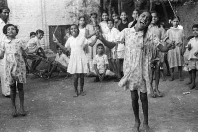 Children playing with skipping ropes at Ali Manzil Haveli, 1965-66.