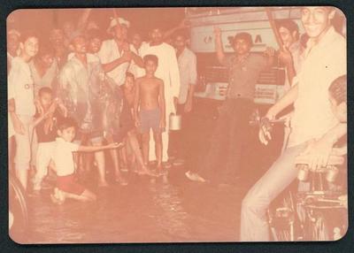 During the 1978 floods, Mumtaz Ahmed recalls the river flooding the Batla House area up-to 2-3 feet high. Mumtaz , then 19, was working with a flood relief unit, supplying food and amenities to the victims. Here, the locals (Mumtaz in raincoat) are trying to clear out the damaged vehicle from the Batla House road.