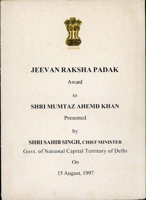 Mumtaz Ahmed ➔ Jeevan Raksha Padak