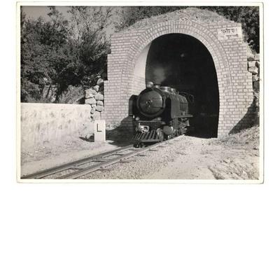 Children's train passing through the tunnel at Khel Gaon Station.
