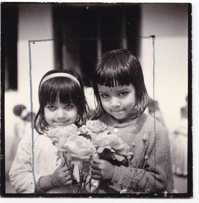 Lala Narain Prasad: Childhood in Delhi ➔ Siblings holding flowers posing for a click